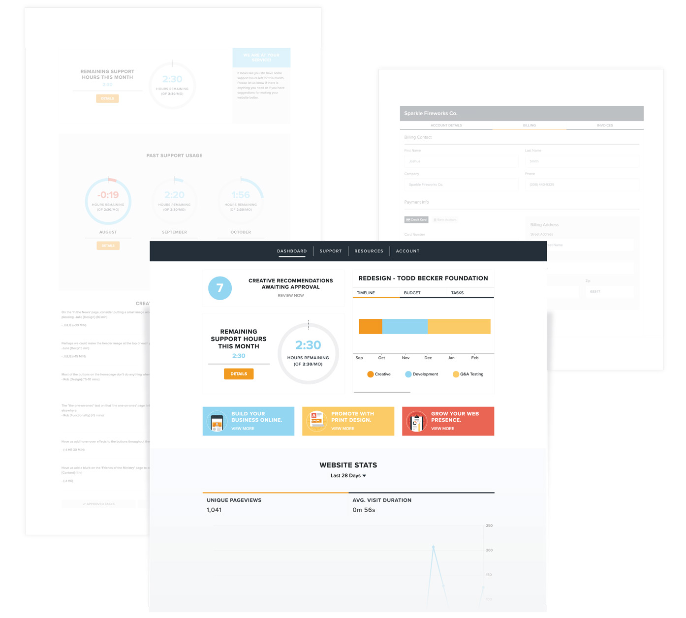 You’ll have monthly support time set aside to cover the technical details and keep your website running smoothly. We’ll also be proactively looking for ways to improve your website through our signature creative recommendations.