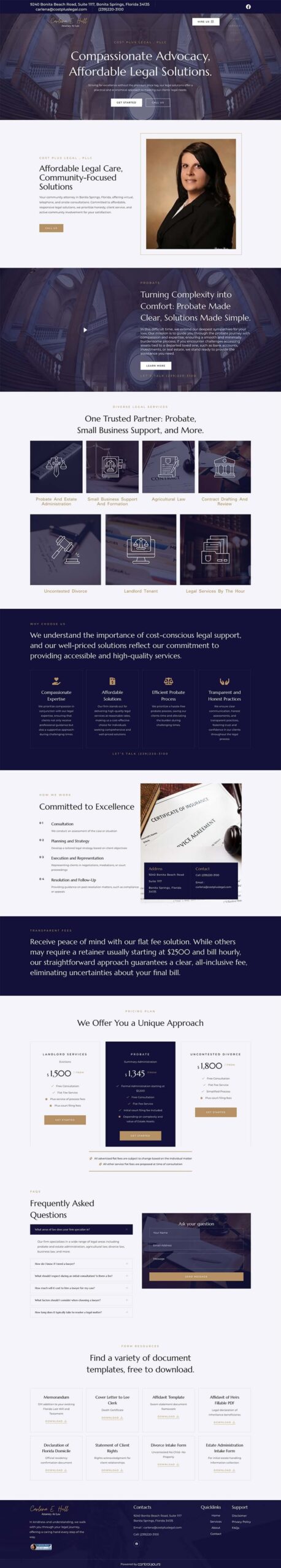 Carlena came to us with specific requests to clean up and refine the existing Cost Plus Legal website. The goal was to improve clarity, organization, and overall usability while keeping the core structure and branding intact. We focused on making the site easier for visitors to navigate and better at communicating the firm’s services and values.